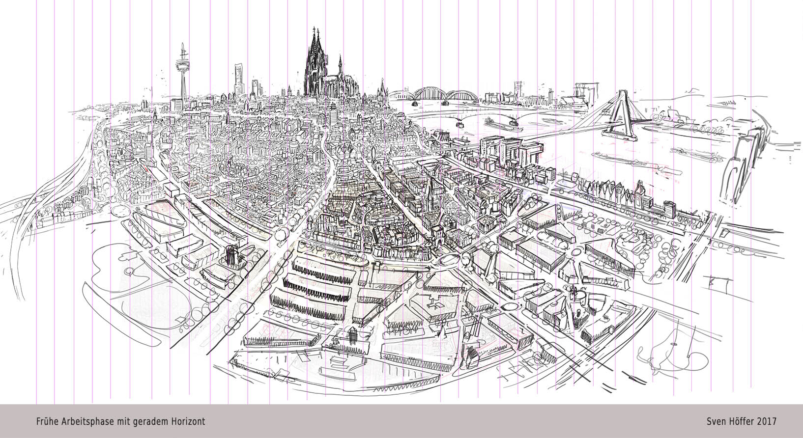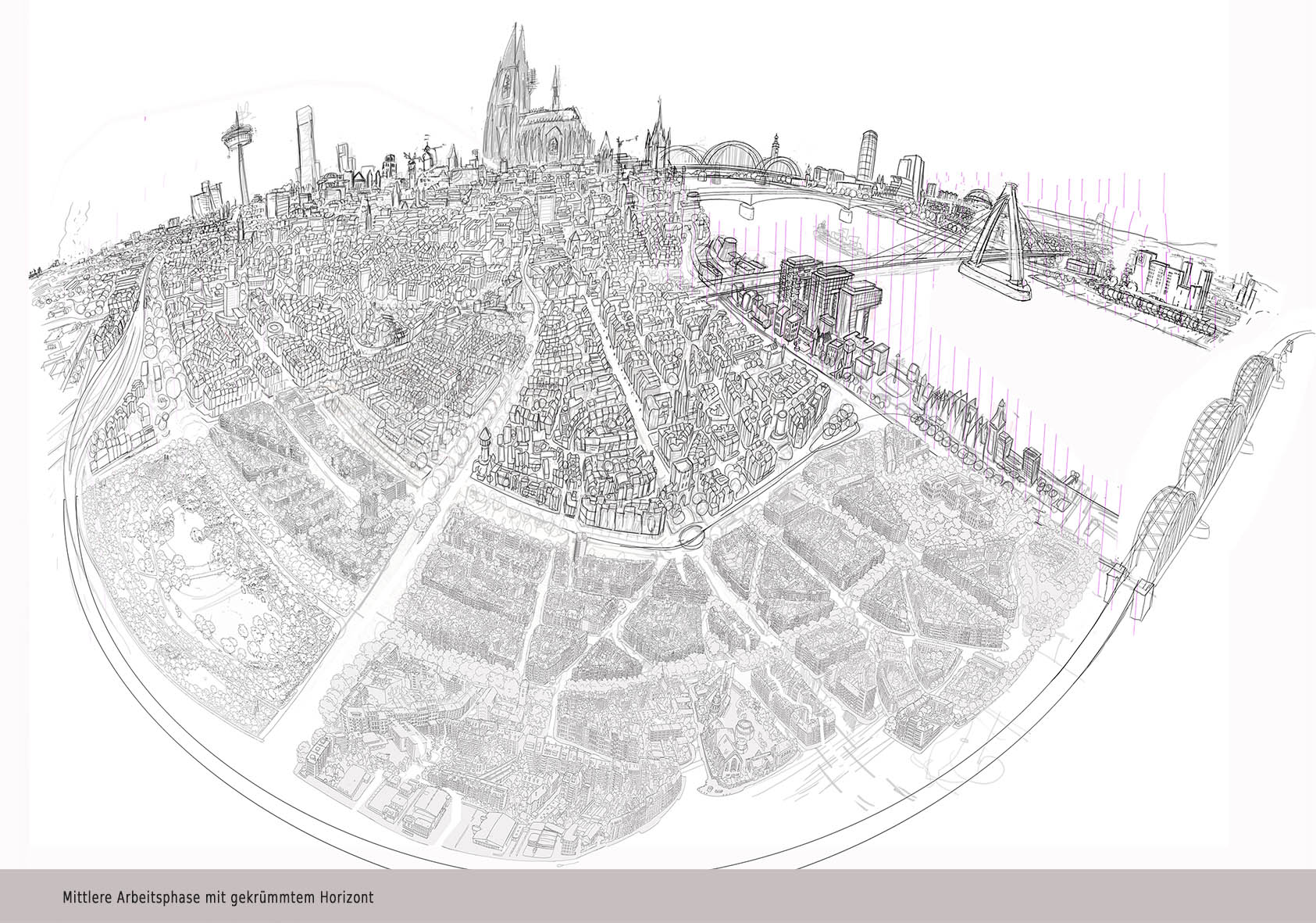 Natürlich habe ich im Lauf der Jahre alle mir verfügbaren Stadt- und Vogelschauansichten Kölns seit Mercator studiert, aber Vorbild in dem Sinne war keine, eher Inspiration.