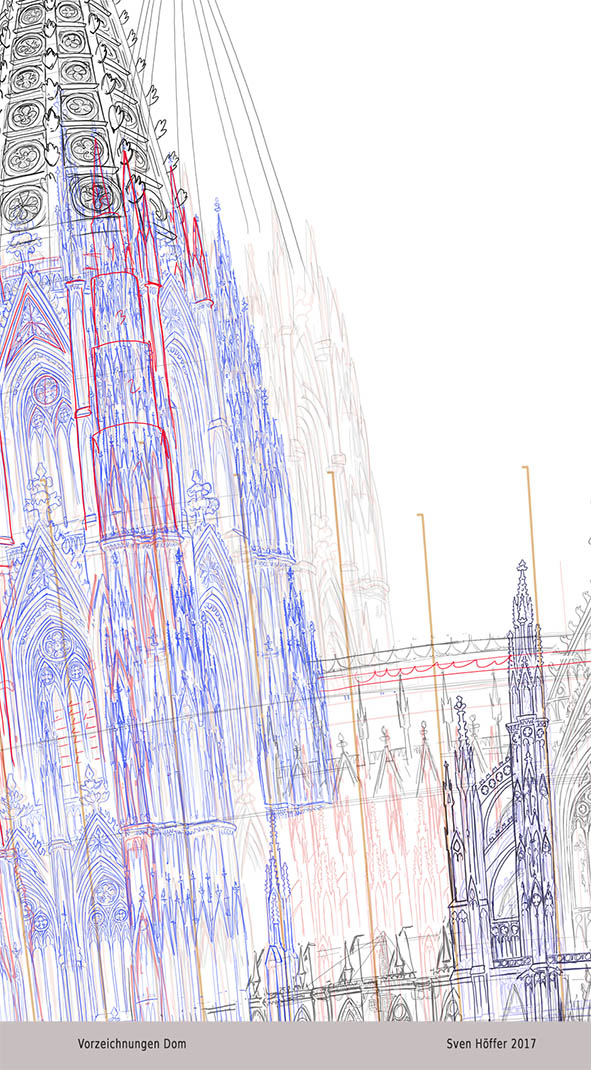 Egal wo man sich in der Stadt bewegt, der Dom ist immer der Ankerpunkt, Herz und Seele der Stadt. Ich habe den Dom so dargestellt, wie ich ihn im Alltag empfinde, nämlicher kompakter in seinen Proportionen und mit sehr dominierenden Türmen.